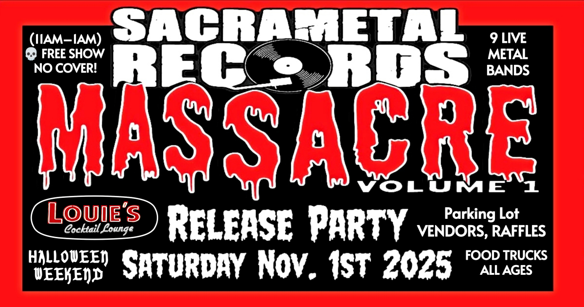 🎸 Album Release Party – SacraMetal Massacre Vol. 1 📅 Saturday, Nov. 1st, 2025🕚 11:00 AM – 12:30 AM📍 Louie’s Cocktail Lounge, Rancho Cordova, CA💥 FREE EVENT – All Ages Welcome for Outdoor Activities! 🔥 What’s Happening?Join us for the official release of SacraMetal Massacre Vol. 1, Sacramento’s hottest metal compilation!10 local bands will perform […]